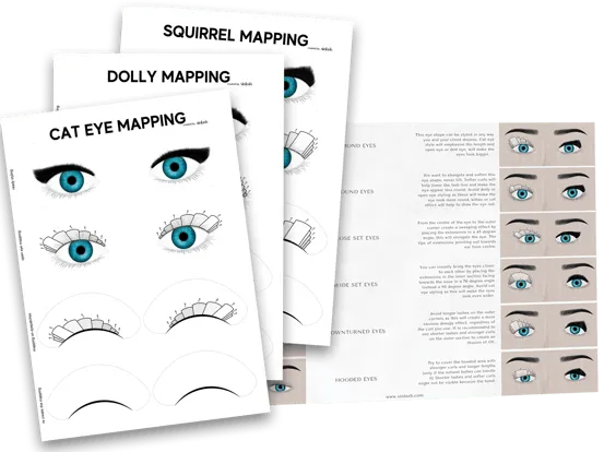 - Lash Mapping Sheets: Custom made Mapping Sheets provide endless possibilities to practice new lashing styles and enhance your skills.
