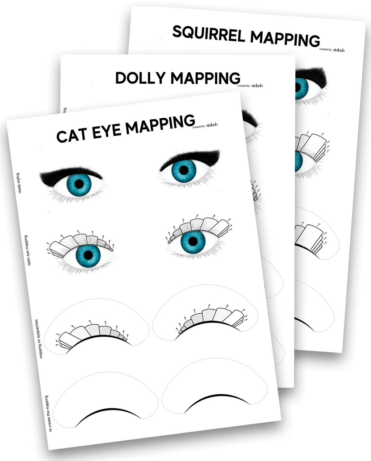 - Lash Mapping Sheets: Custom made Mapping Sheets provide endless possibilities to practice new lashing styles and enhance your skills.