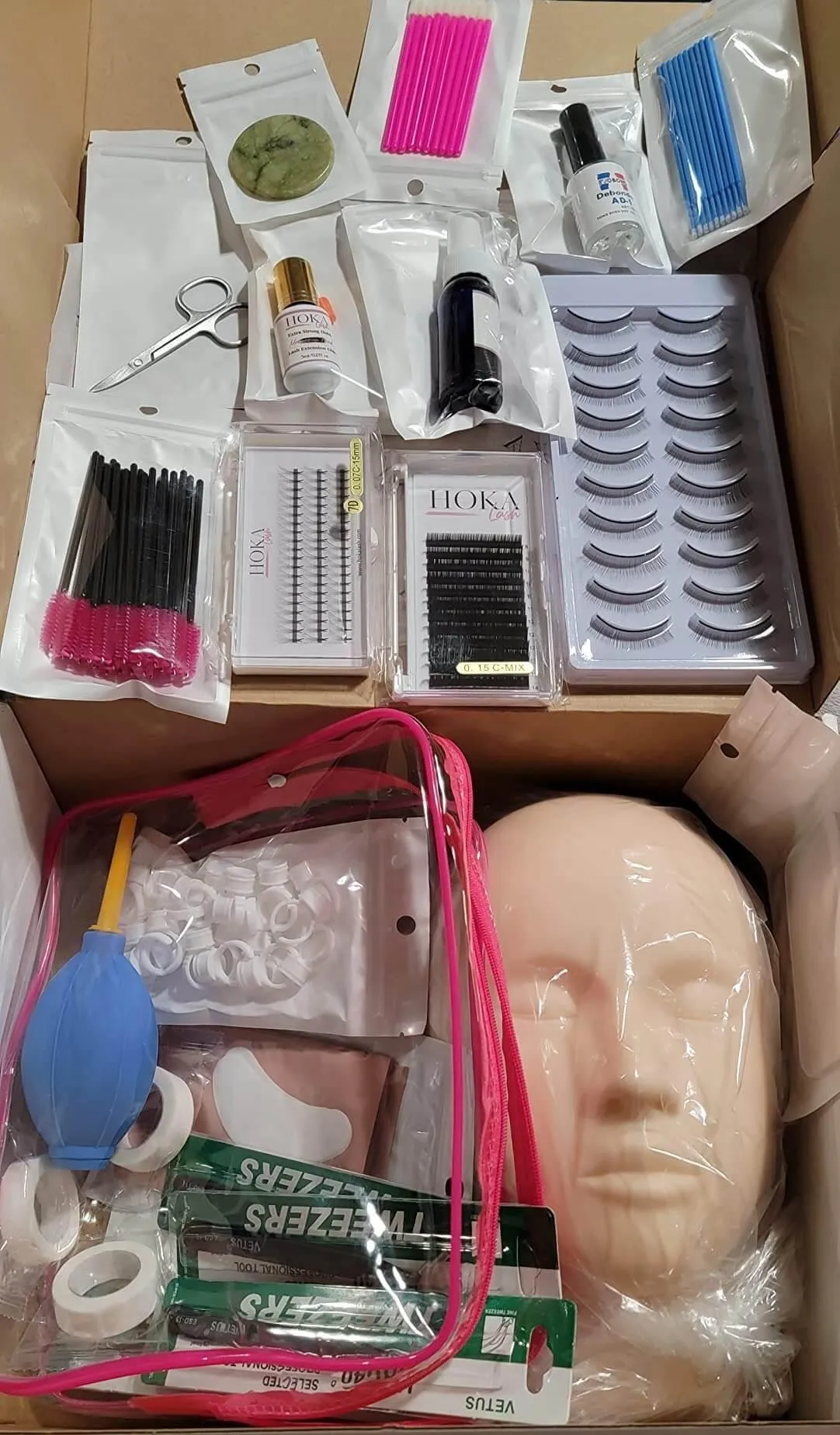 Hoka lash truly has everything you need to start practicing lashing. All of the products are AMAZING. The glue sets fast and the tweezers are just like the ones a professional would use. Everything I received was just as it was in the pictures when I ordered the kit.